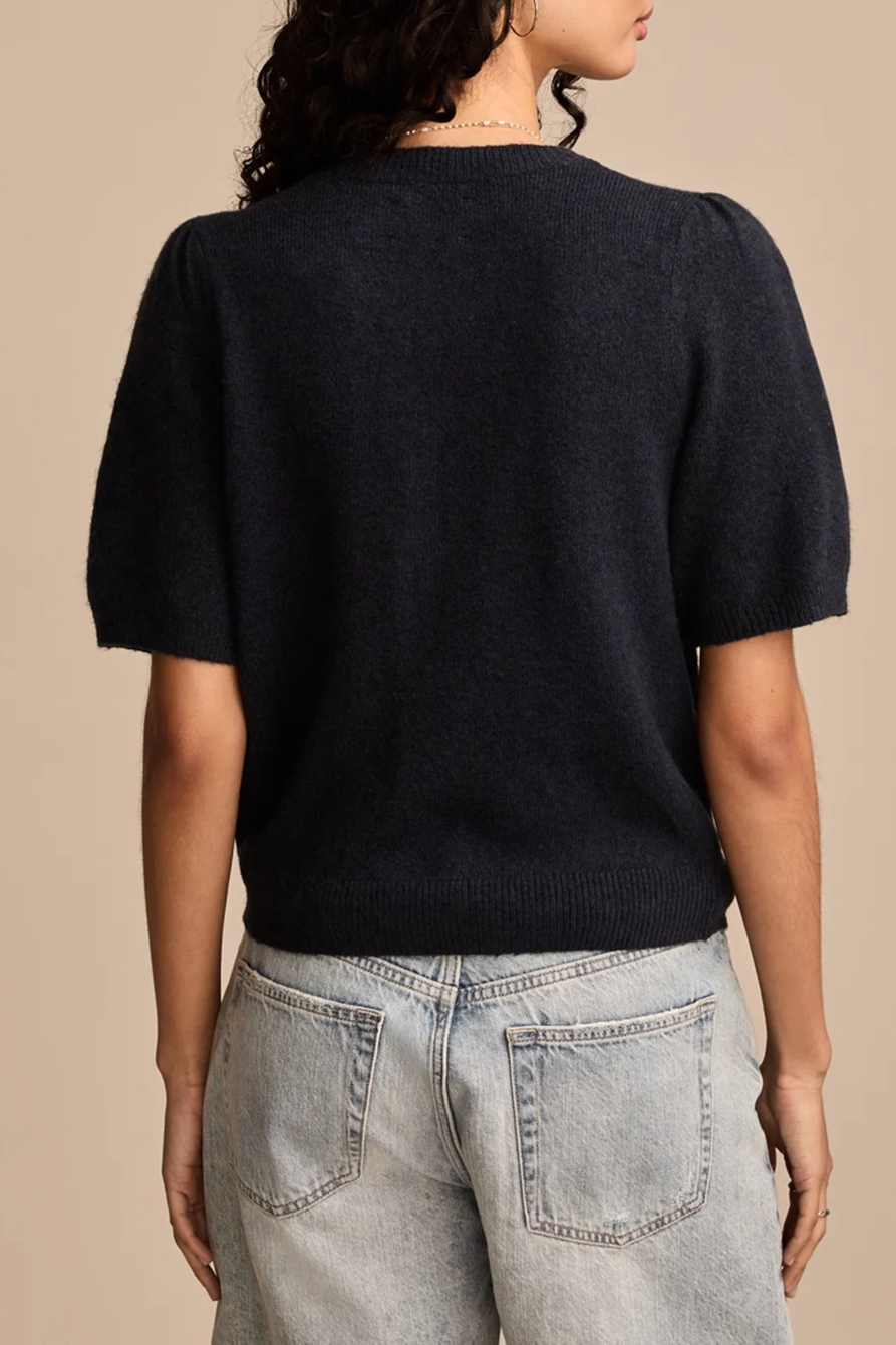 Cadet Navy Short Sleeve Puff Cardigan